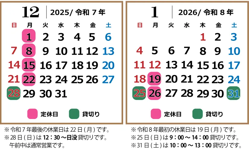■ 1月25日(日)9時00分~14時00分まで貸切りとなります。